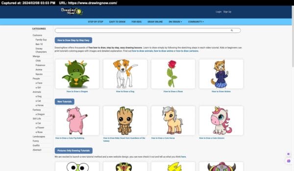 Art For Kids is an ideal starting point for beginners who want to develop their drawing skills. Although designed with children in mind, this website offers a simple and accessible approach to art for all ages. The basic and easy-to-follow tutorials provide a solid foundation for aspiring artists. Use Art For Kids as a stepping stone to build confidence before moving on to more complex subjects.